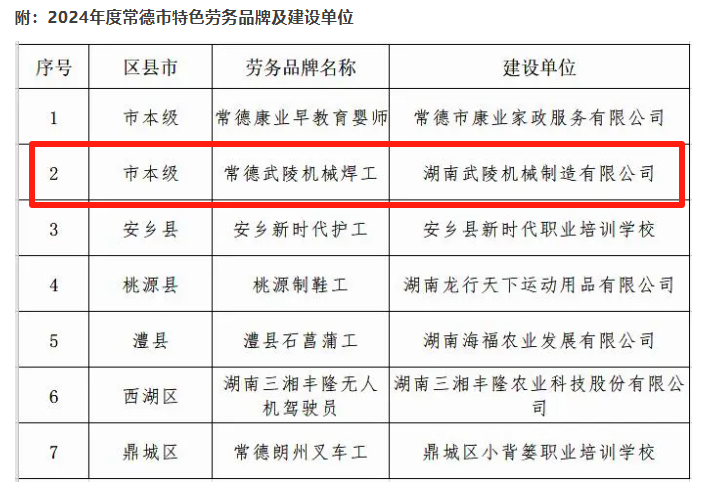 近日常德市人社局、常德市财政局联合公布2024年度常德市特色劳务品牌评定结果,“常德武陵机械焊工”凭借其深厚的产业基础、规范的人才培养体系和显著的社会经济效益,成功通过复评,再次获认定为市级特色劳务品牌。此次评选结果不仅是对过往成绩的认可,更是充分展现了常德市在高质量技能人才培养和推动产业转型升级方面的卓越成果,也为地方经济持续健康发展注入了新的活力。